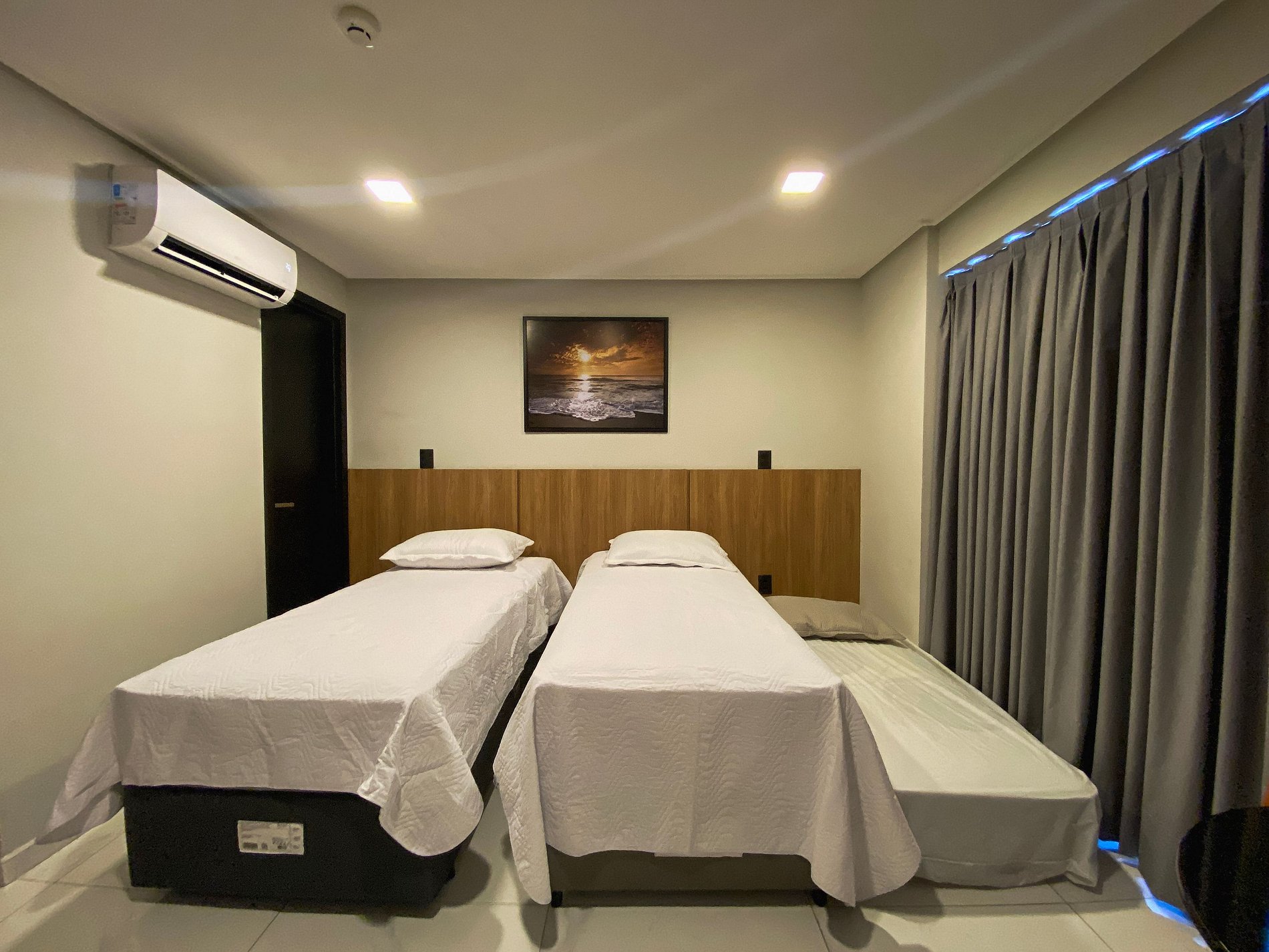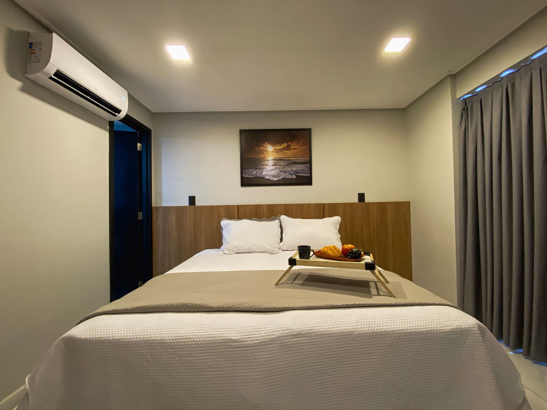 Ambiente acolhedor – Cama confortável, ar-condicionado e blackout para noites tranquilas.