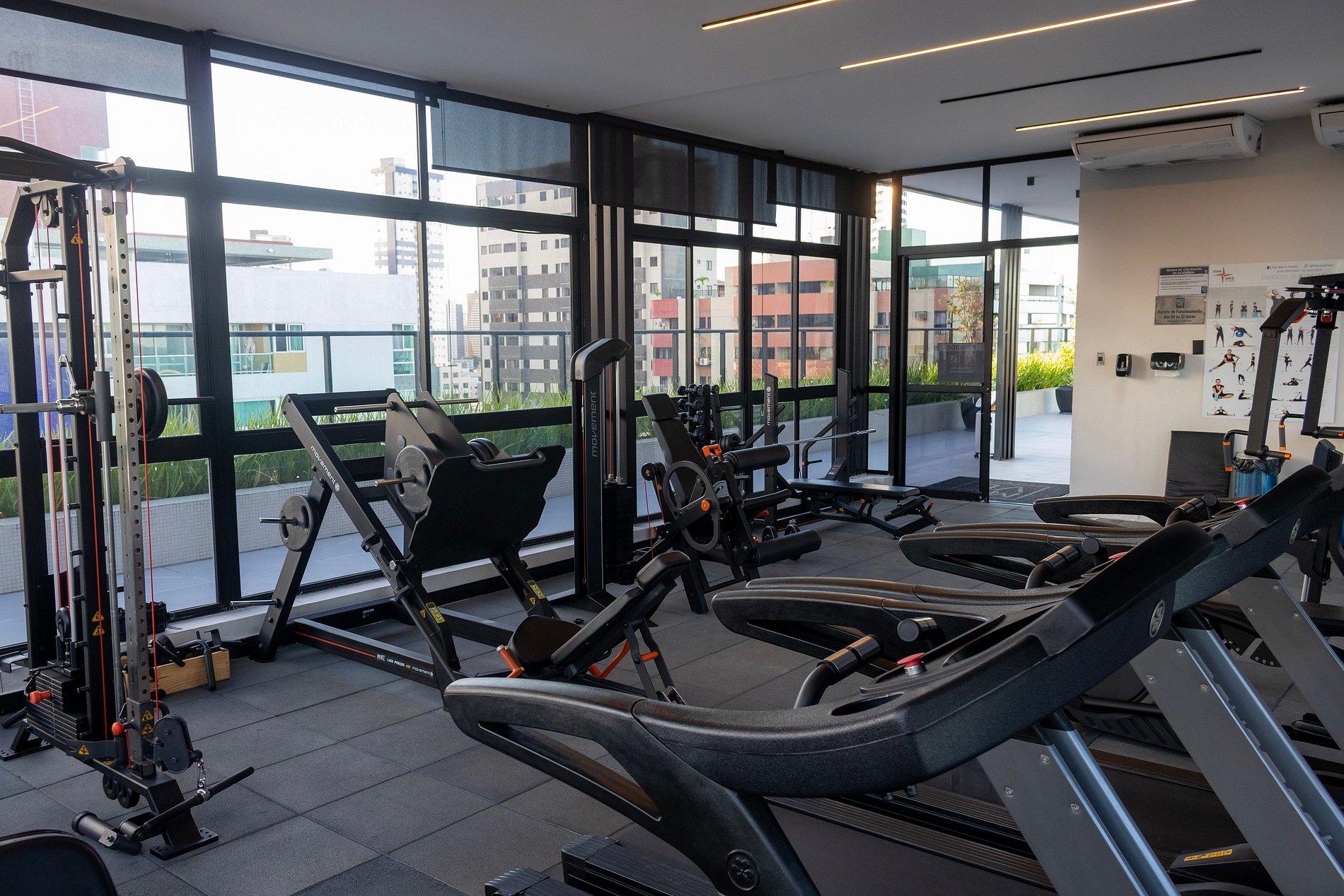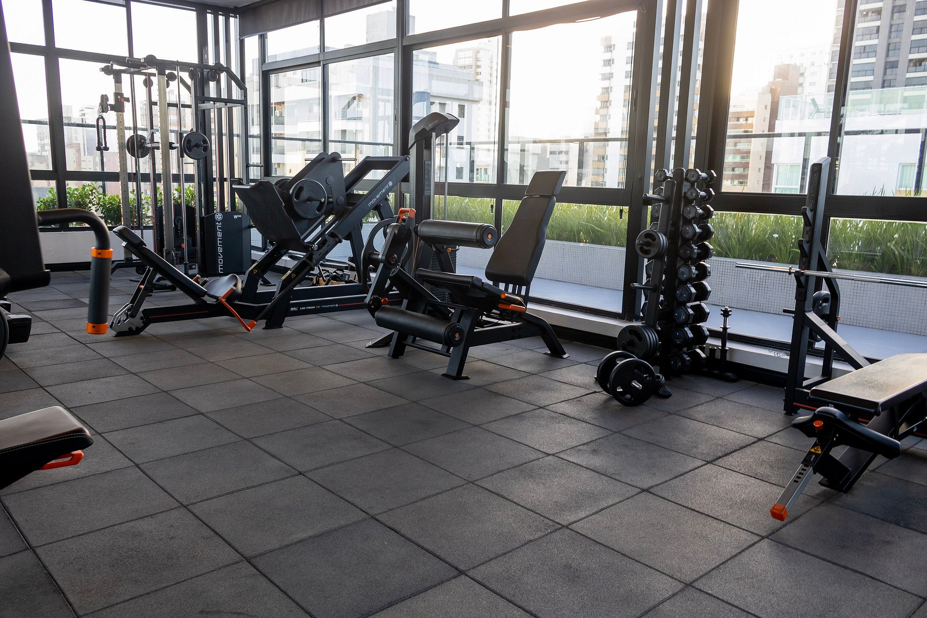 Academia equipada para manter sua rotina de exercícios.