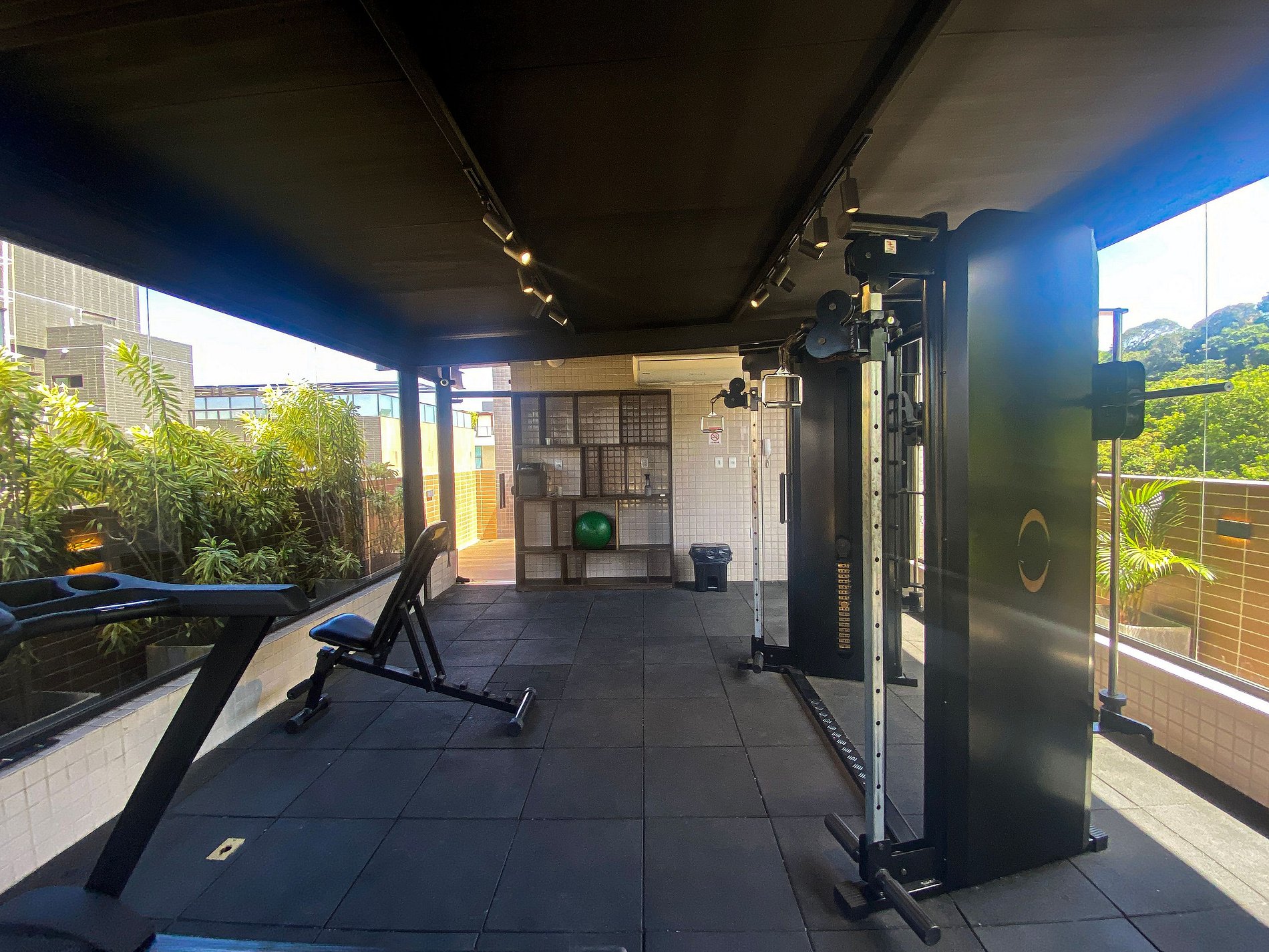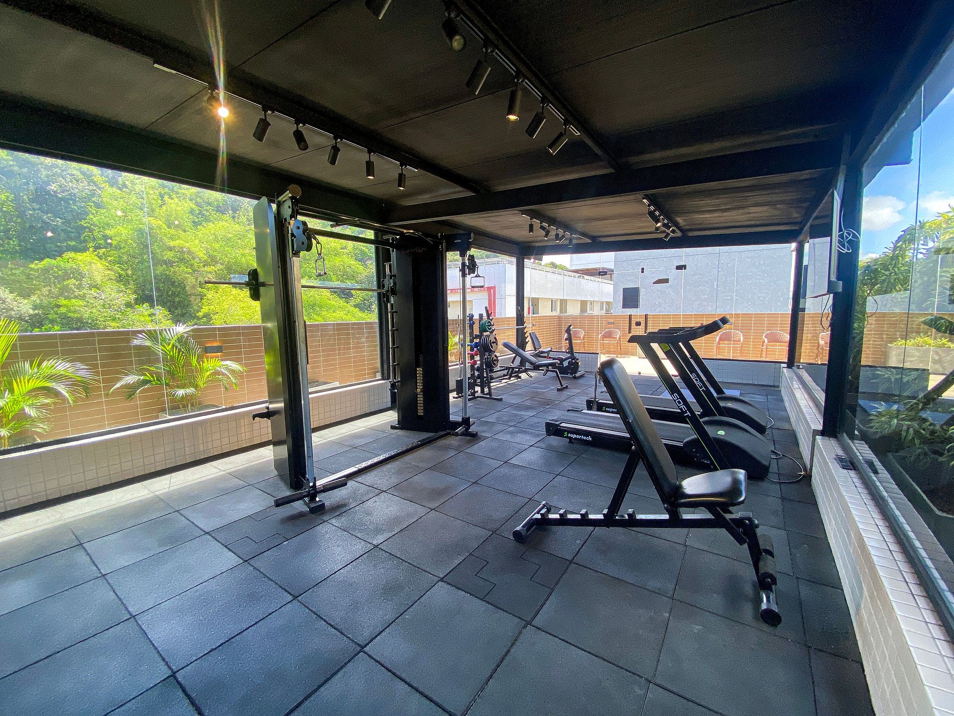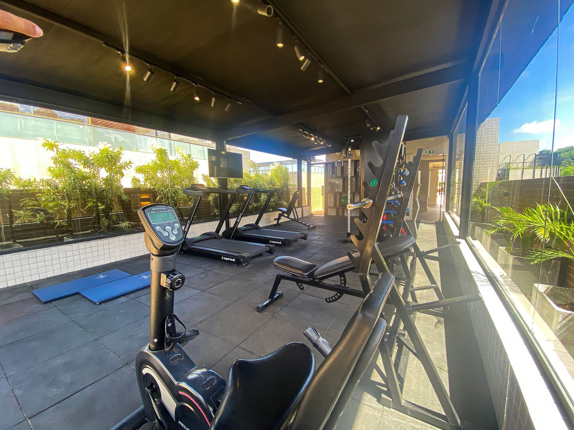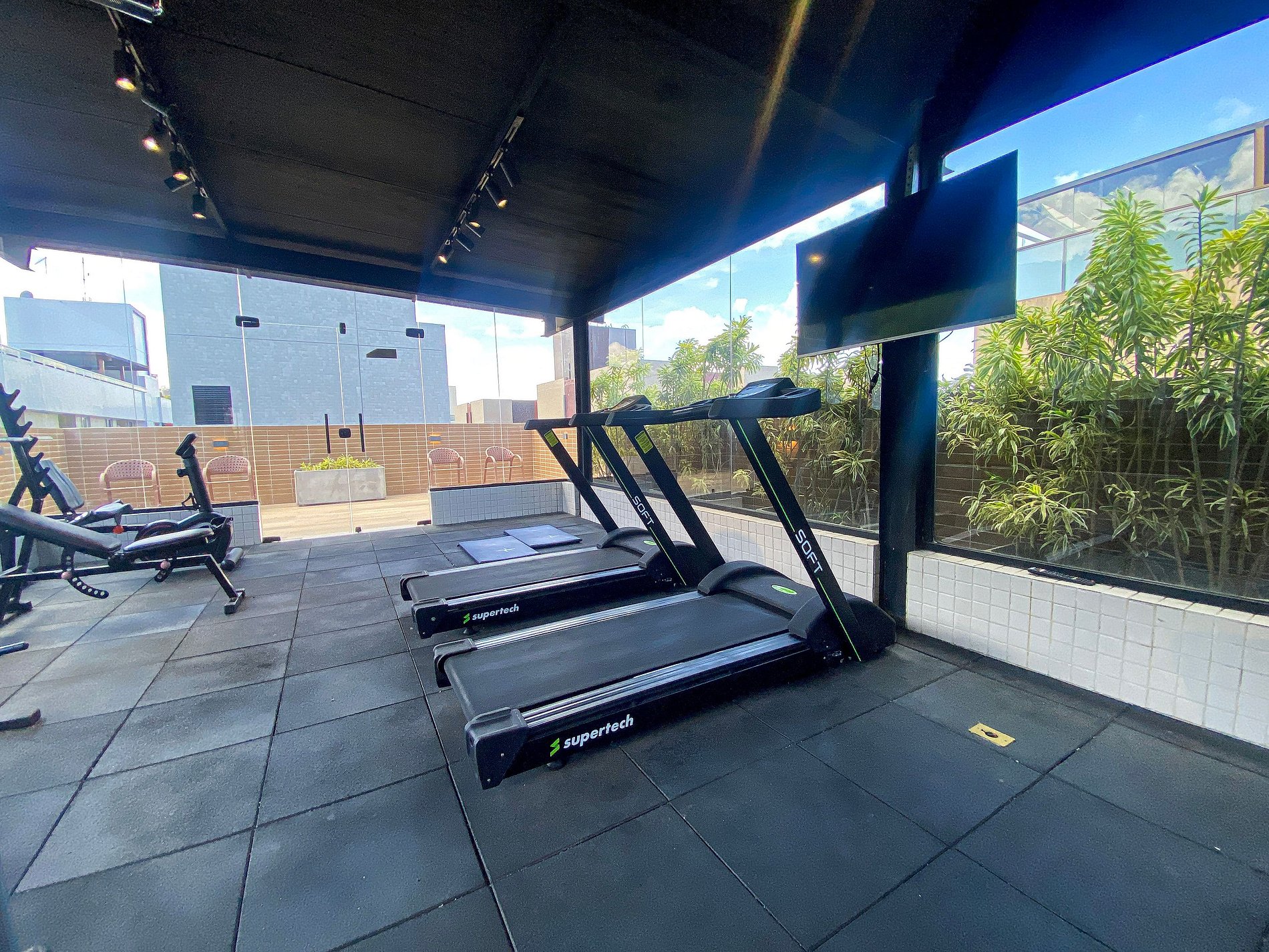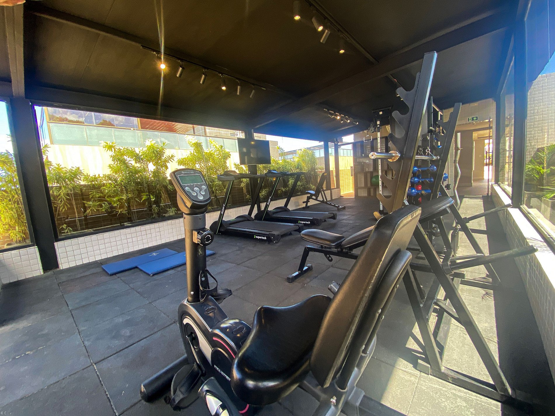 Academia equipada para manter sua rotina de exercícios.