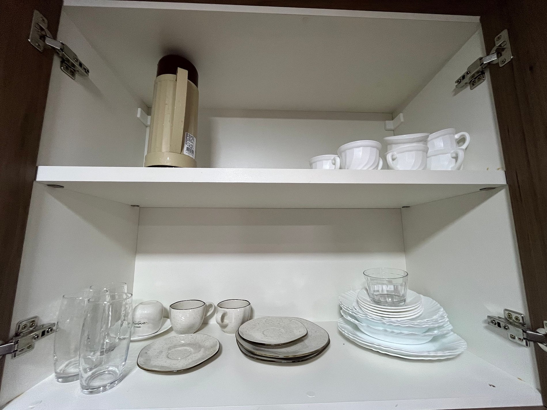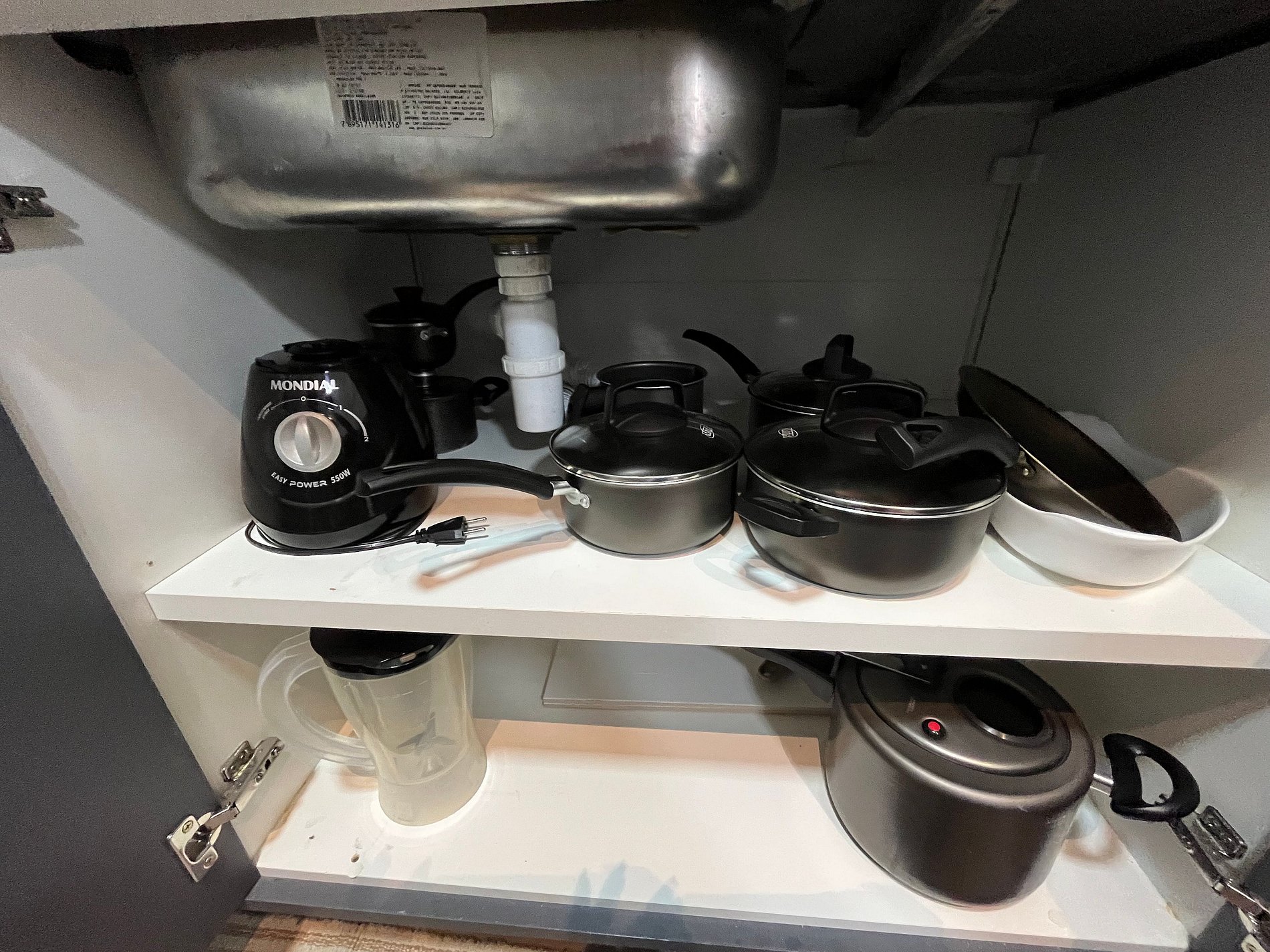 Utensílios de cozinha (panelas, pratos, copos, talheres, etc.)