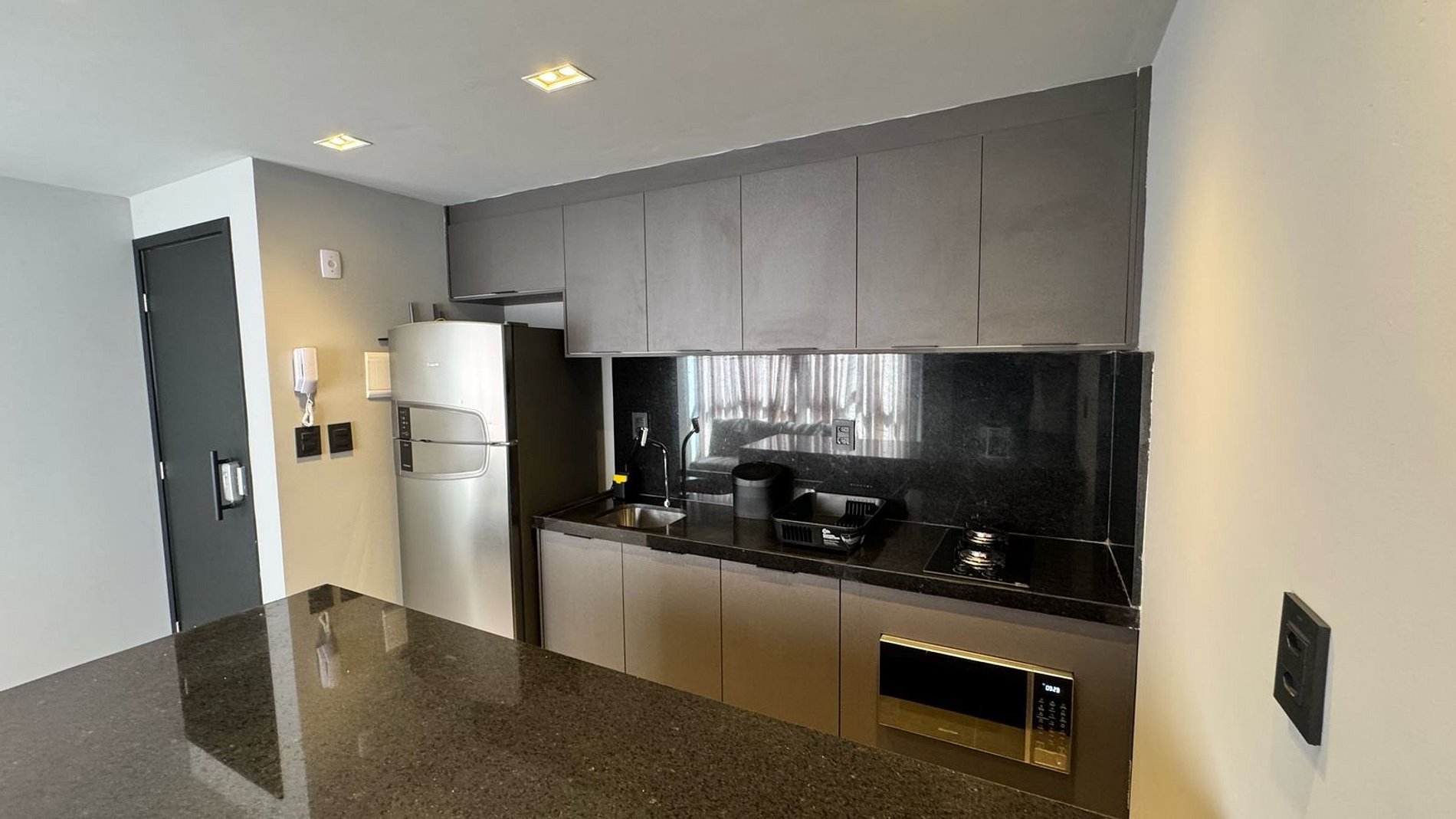 – Oferecemos uma cama queen super confortável, além de TV, internet Wi-Fi de alta velocidade e espaço para trabalho home office. – Cozinha equipada com geladeira, micro-ondas, Geladeira, utensílios básicos para refeições práticas e muito mais, tudo pensado para sua comodidade.