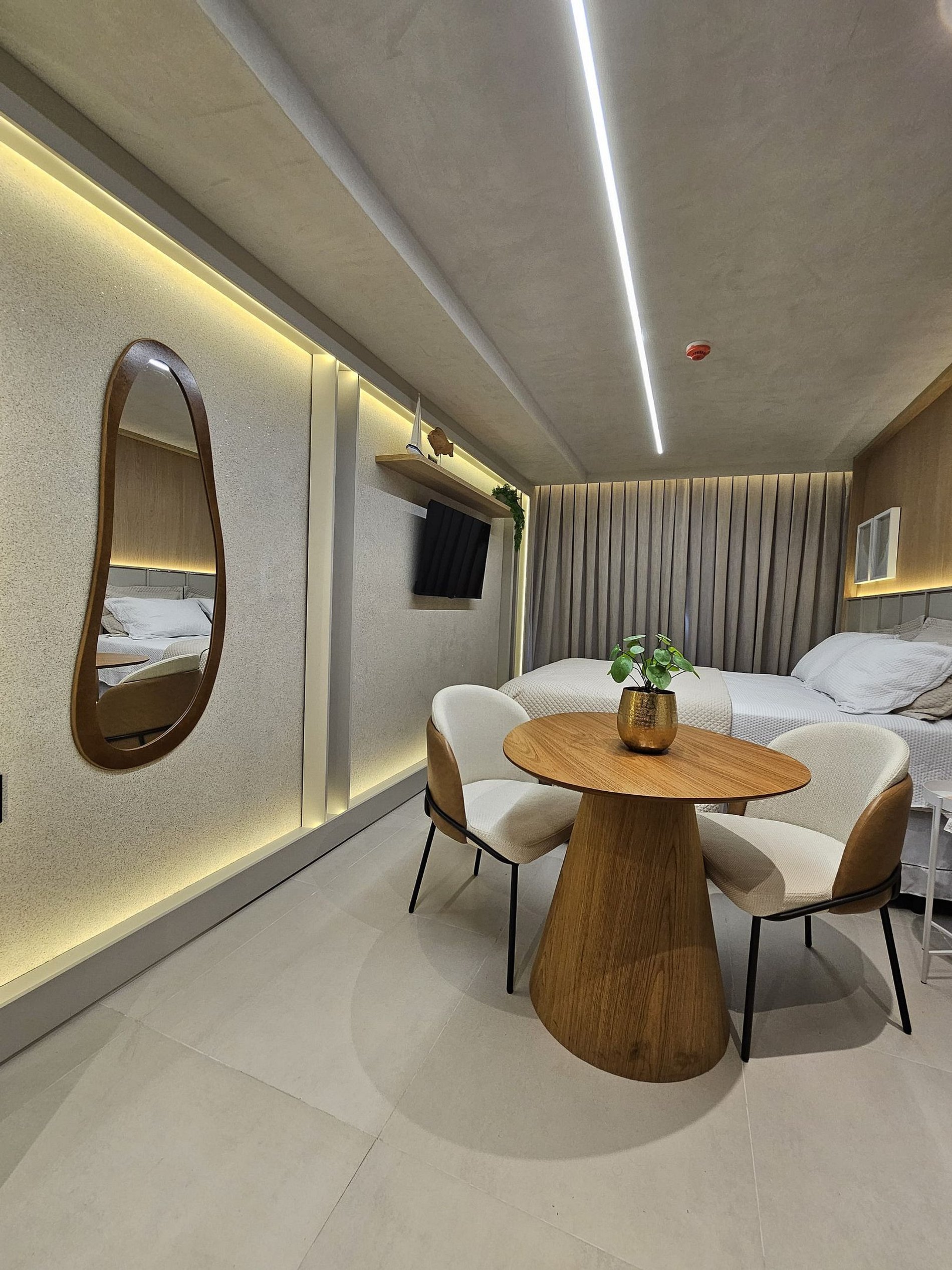 O espaço acomoda até 3 pessoas, com uma cama muito confortável, ar-condicionado, TV e um ambiente cuidadosamente preparado para proporcionar momentos de descanso e bem-estar.
