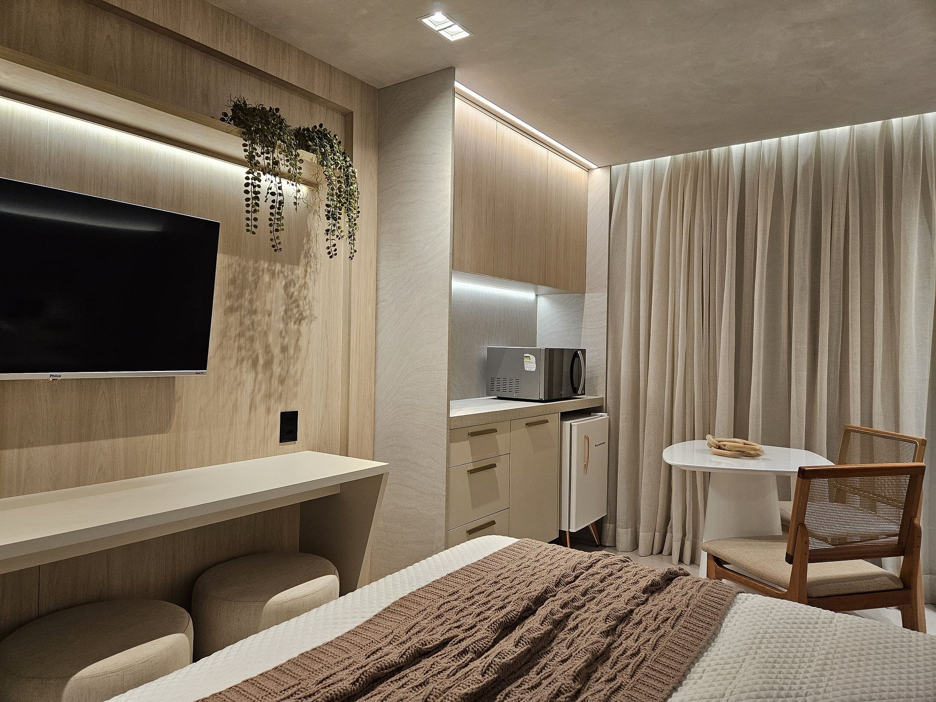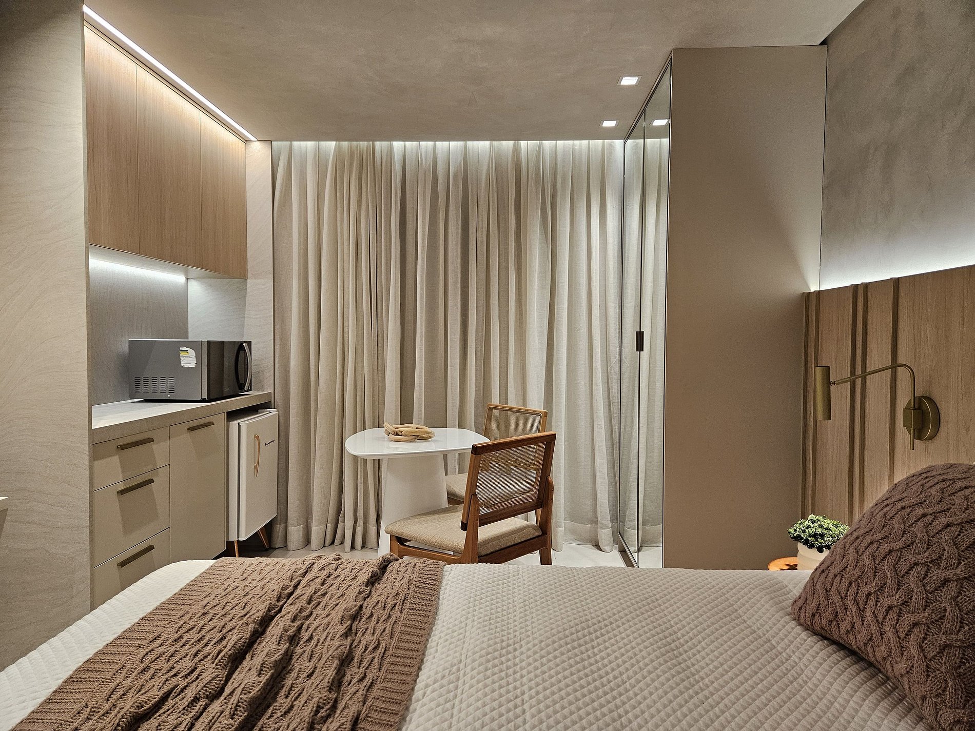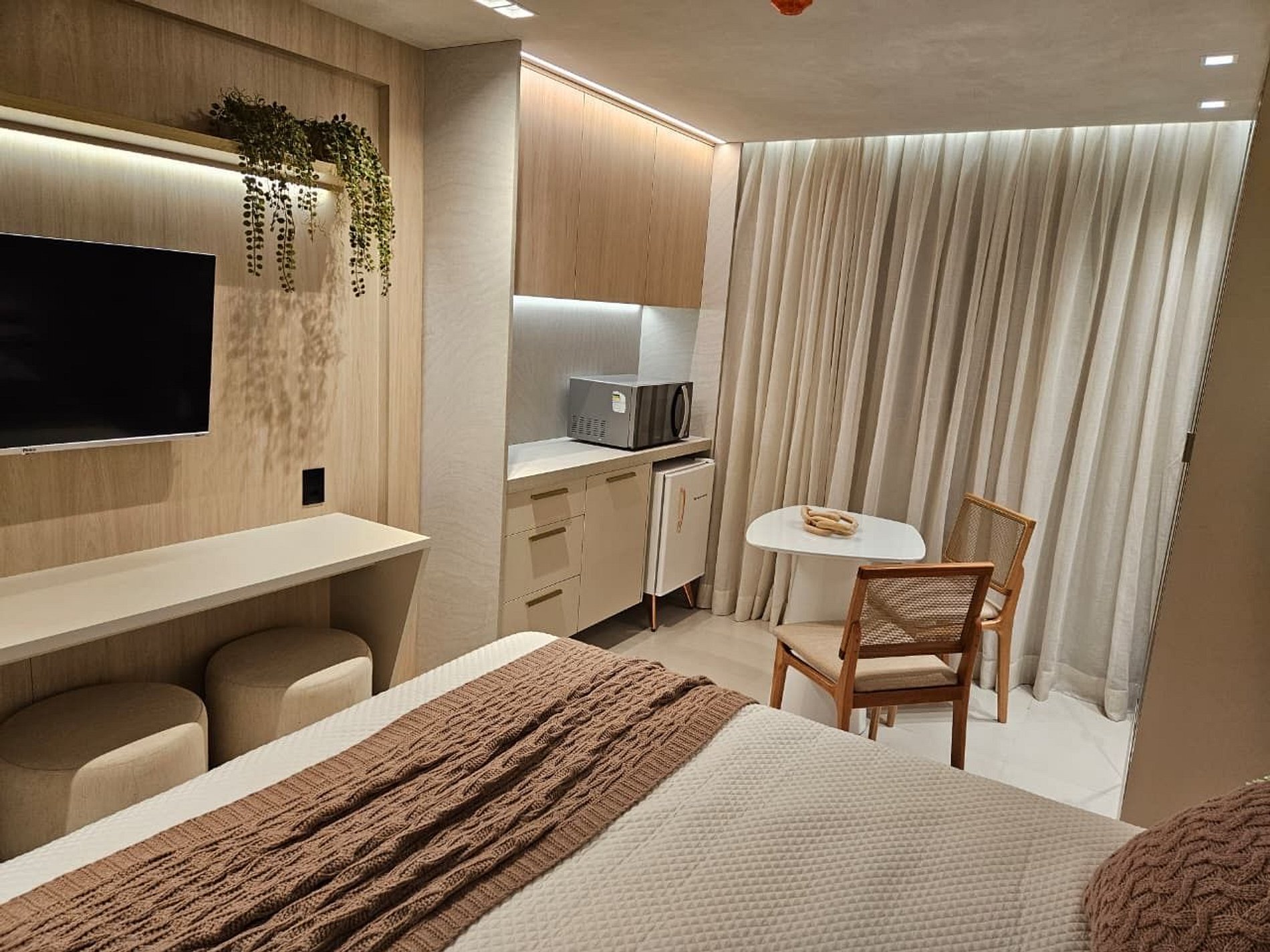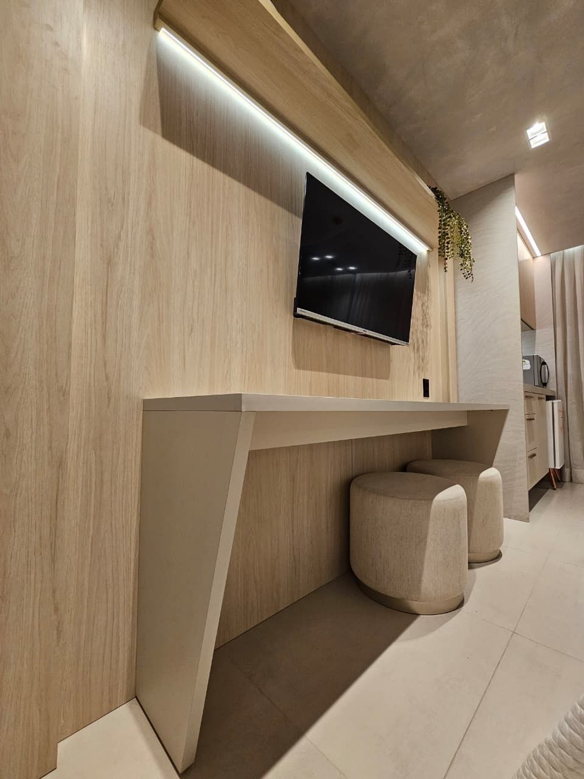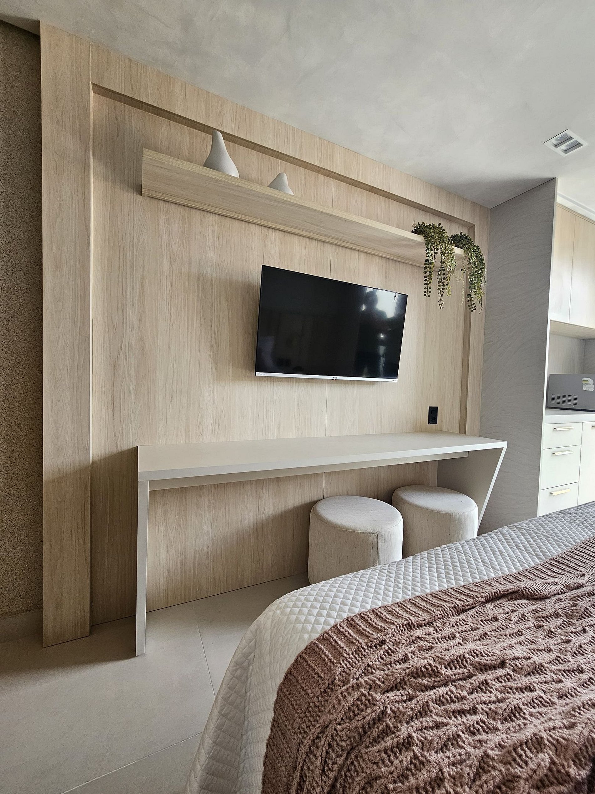 O Aconchegante Flat Pé na areia foi pensado nos mínimos detalhes para oferecer uma estadia prática, confortável e com um toque de tecnologia. O ambiente é moderno, aconchegante e funcional, com cama queen, uma cama auxiliar e uma cozinha equipada com tudo o que você precisa.