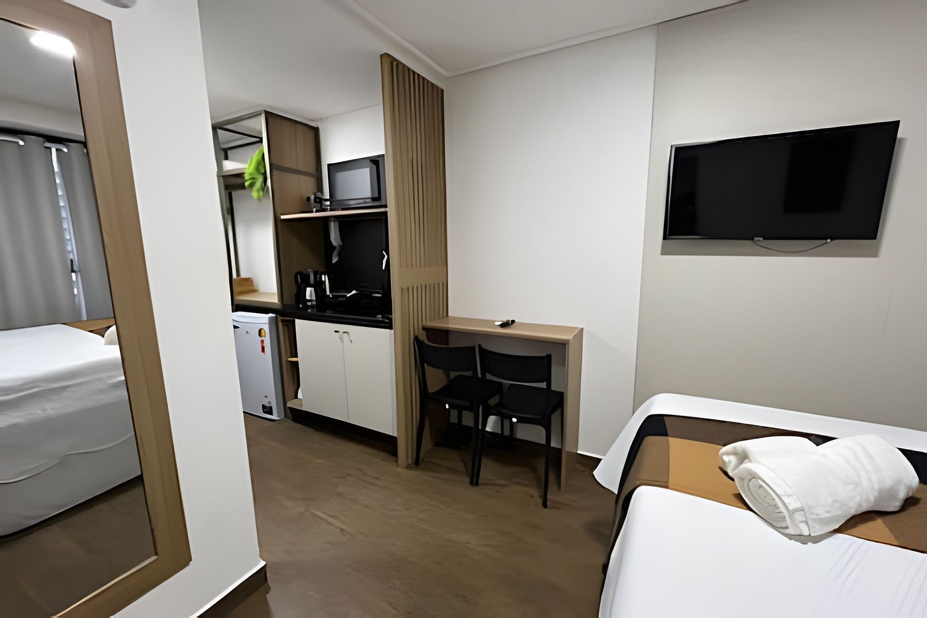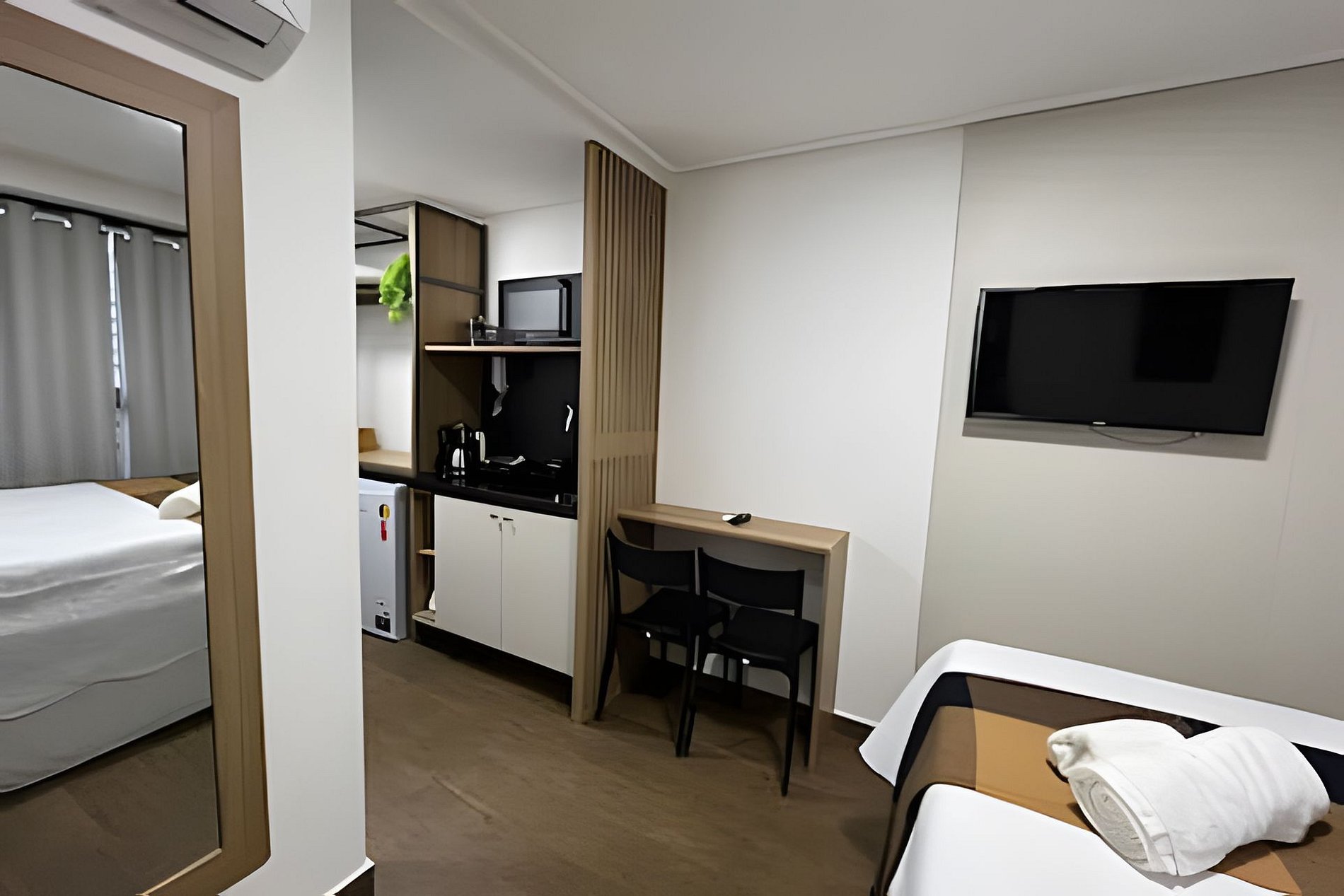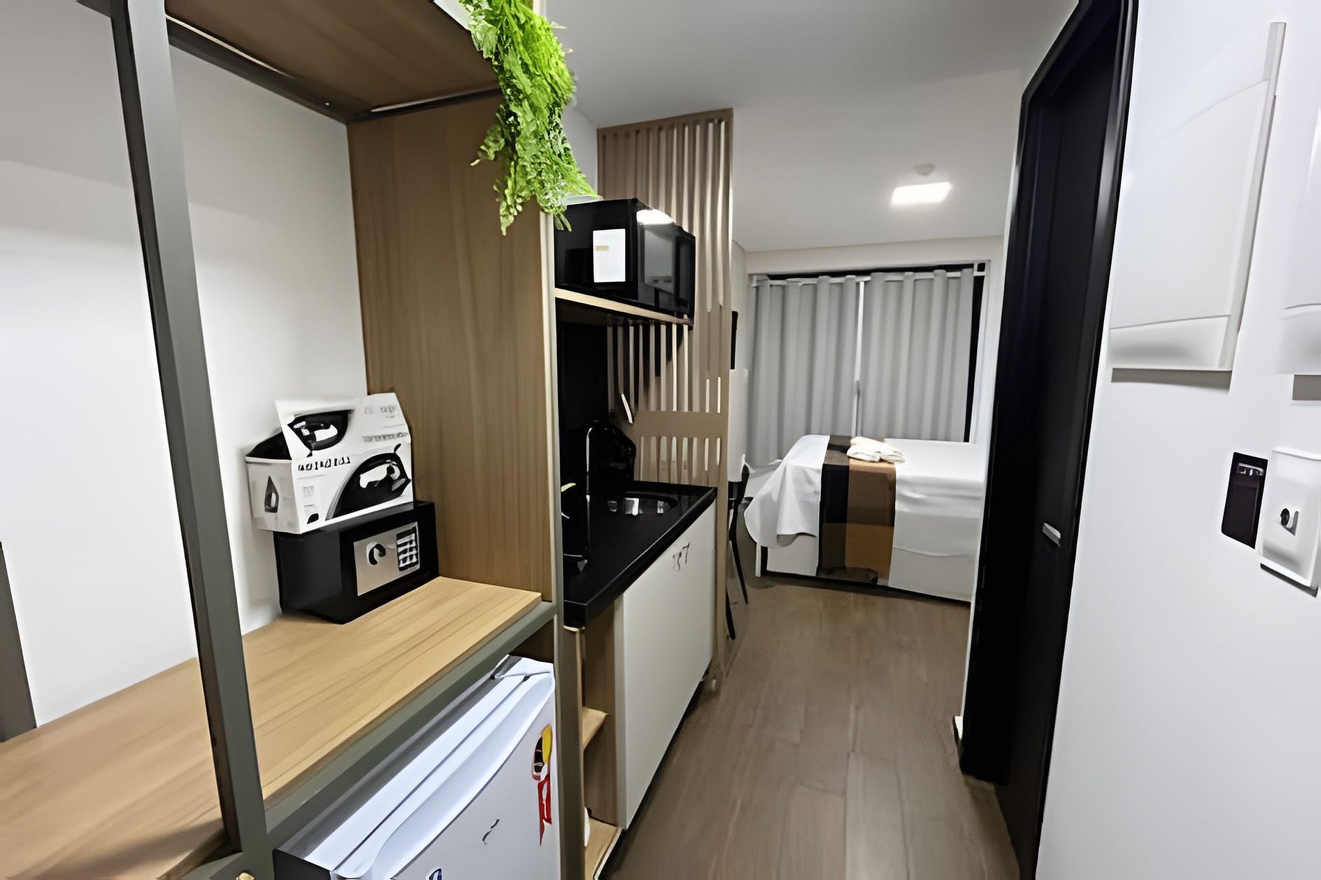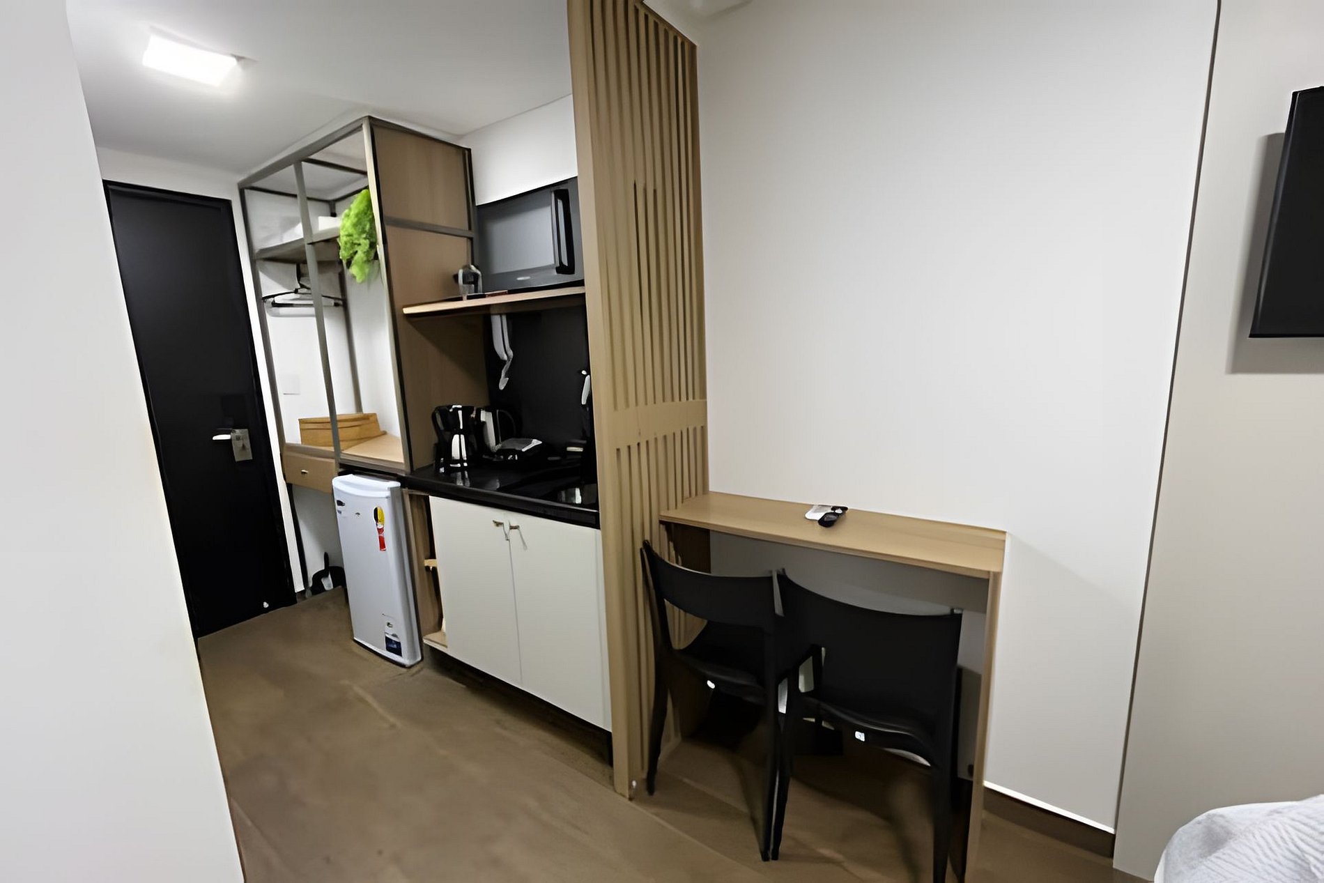 Nosso flat foi pensado para proporcionar bem-estar e praticidade, seja para lazer ou trabalho.