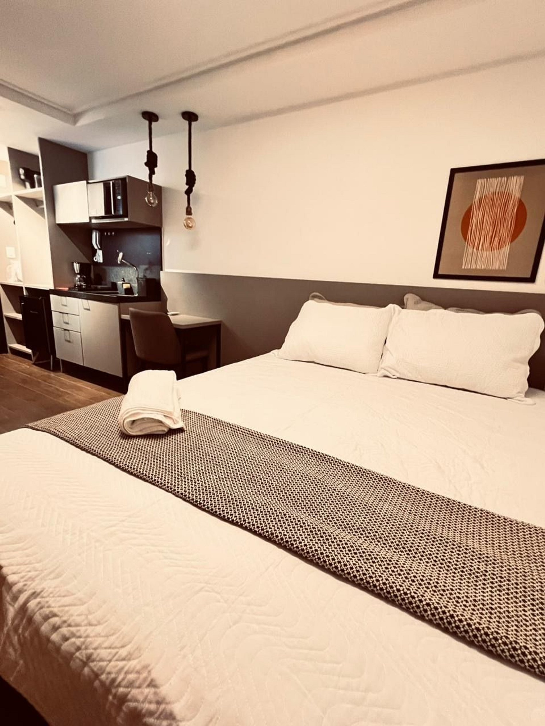 Nosso flat foi pensado para proporcionar bem-estar e praticidade, seja para lazer ou trabalho.